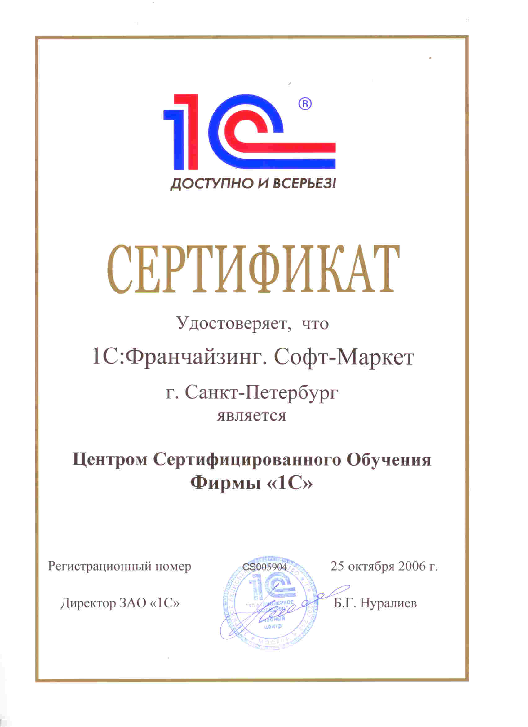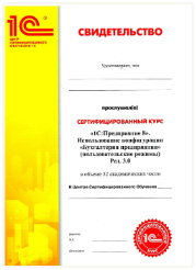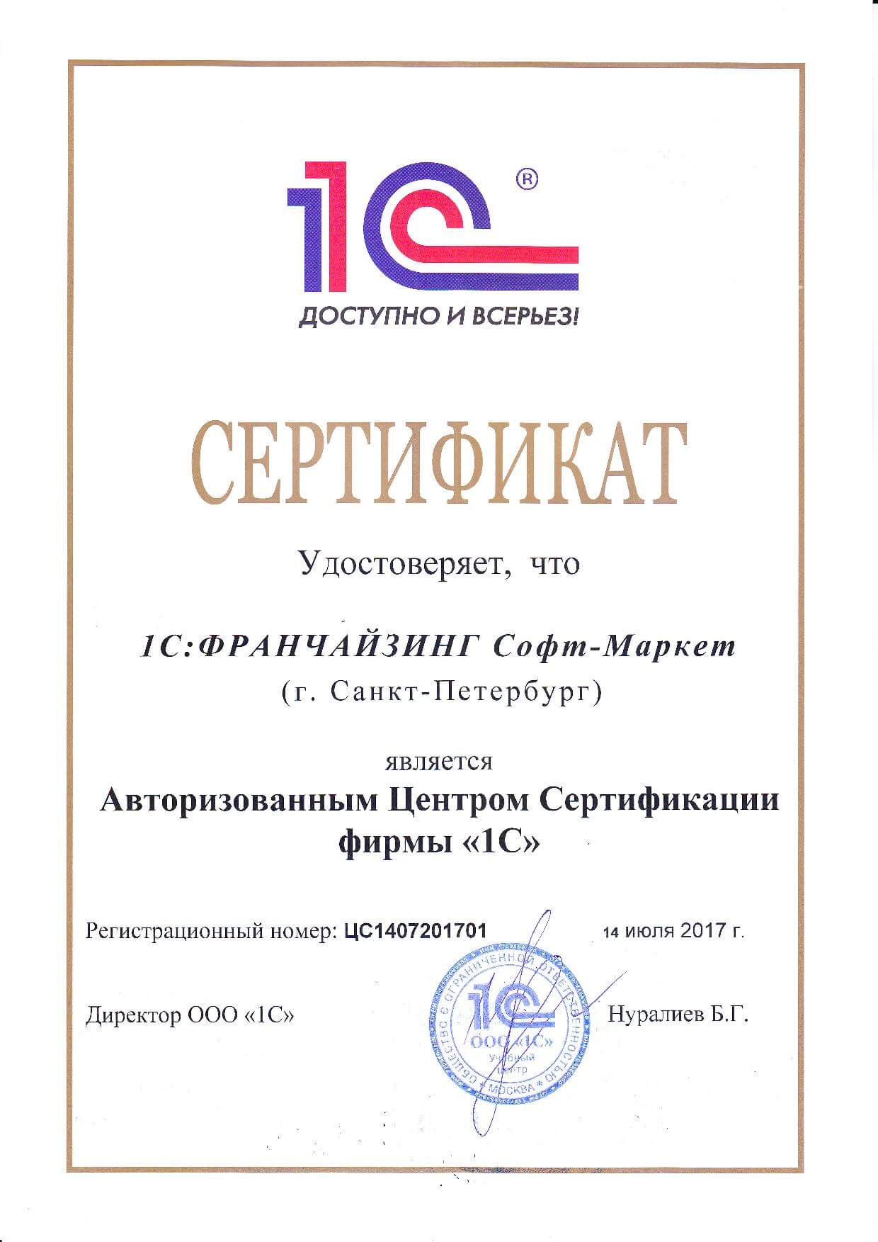 • Свидетельство «1С»